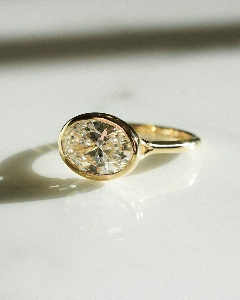 Bezel Setting Oval Cut Lab Grown Diamond Ring Solitaire CVD Engagement Ring 2.00 Ct East West Oval Lab Diamond Wedding Ring VS1