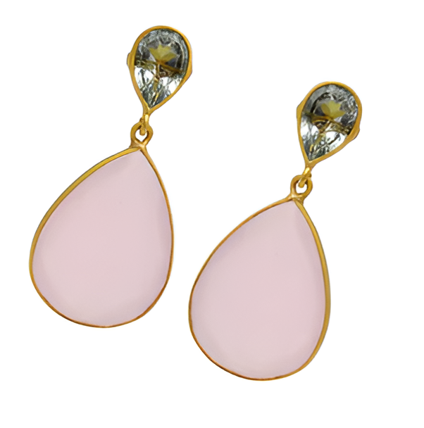 Bezel Setting Topaz Chalcedony Gemstone 925 Sterling Silver Gold Plated Stud Dangle Earrings Fashionable Earring for Women.