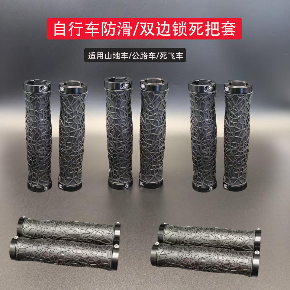 Bicycle Handlebar Grips 22.2mm Rubber Black Aluminum Alloy Lock Ring Mountain Bike Road Bike Fixed Gear Grip