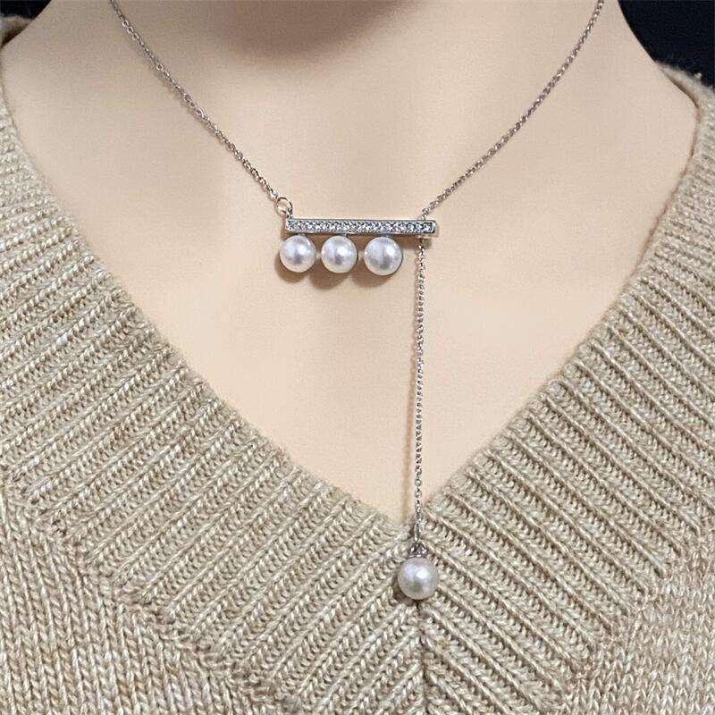 Big Brand 6-7mm Baroque Freshwater Pearl Necklace Bracelet Set Zhuji Natural Same Bow Design