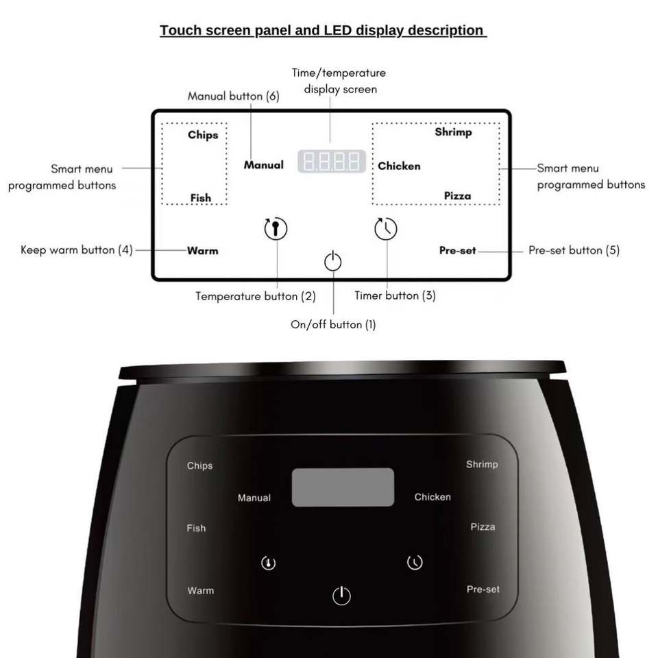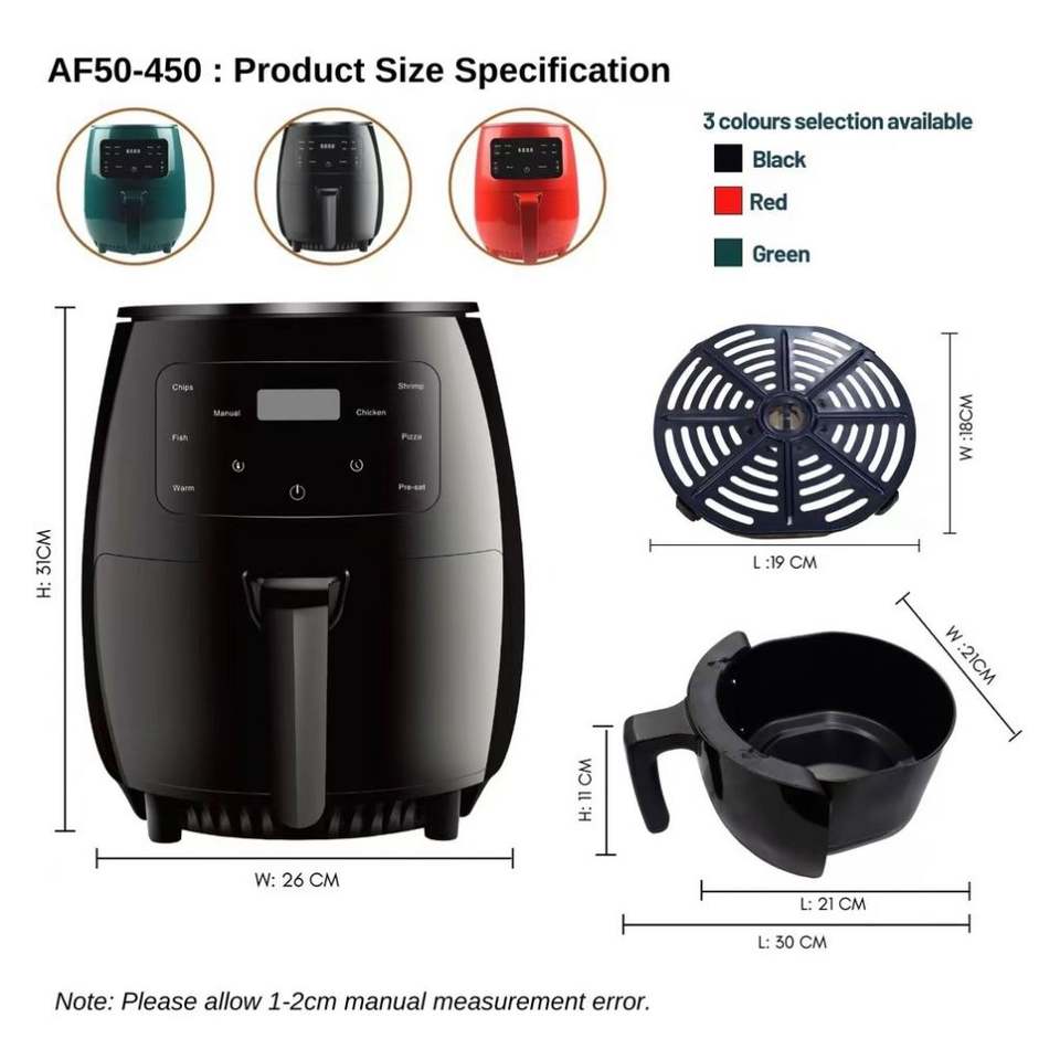 Non-Stick Cooking Surface, Adjustable Thermostat Control, Detachable Oil Container, Overheat Protection, With Light Indicator, LCD Display, Led Display