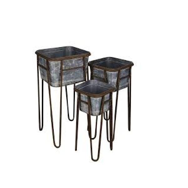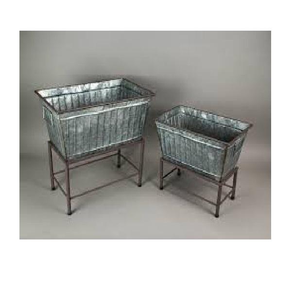 Big Circular Galvanized Metal Planter Set with Stands Elevated Trough Garden Beds for Outdoor & Patio Use