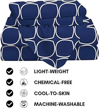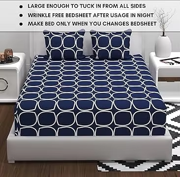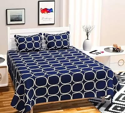 Big Discount Best Price 180 TC Cotton Blend Queen Bedsheet with 2 Pillow Covers Soft Durable Blue White 90x85 Inch Bedding Set