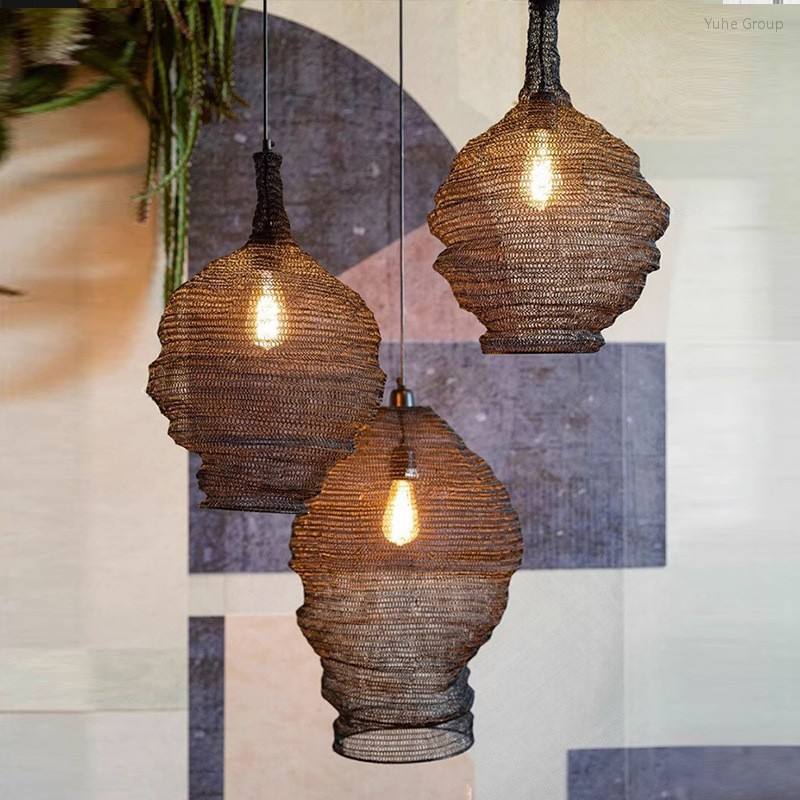 Big Oval Basket Weave Lantern Handmade Modern Woven Pendant Lamp for Restaurant Use LED Dimmable