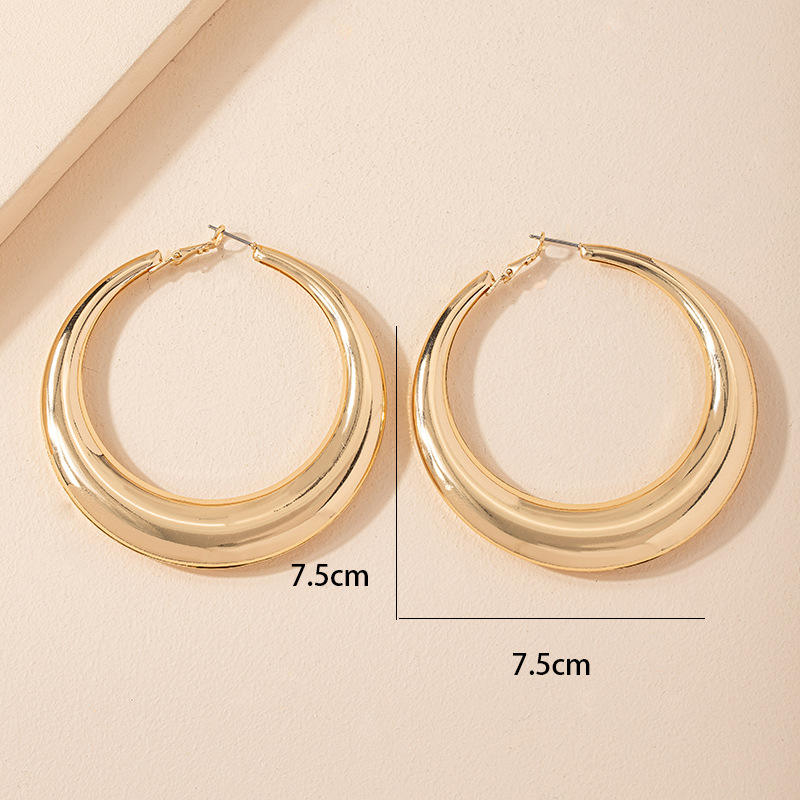 Big Round Hollow Hoop Earrings Trendy Gold Plated Exaggerated Chunky Thick Hollow Geometric Large Huggie Earrings