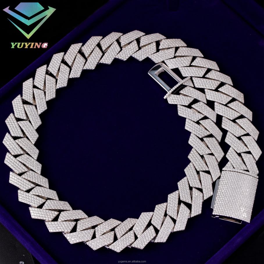 Big Size 24mm Heavy Cuban Chain 925 Sterling Silver Moissanite Hip Hop Necklace Iced Out Moissanite Cuban Link Chain Jewelry