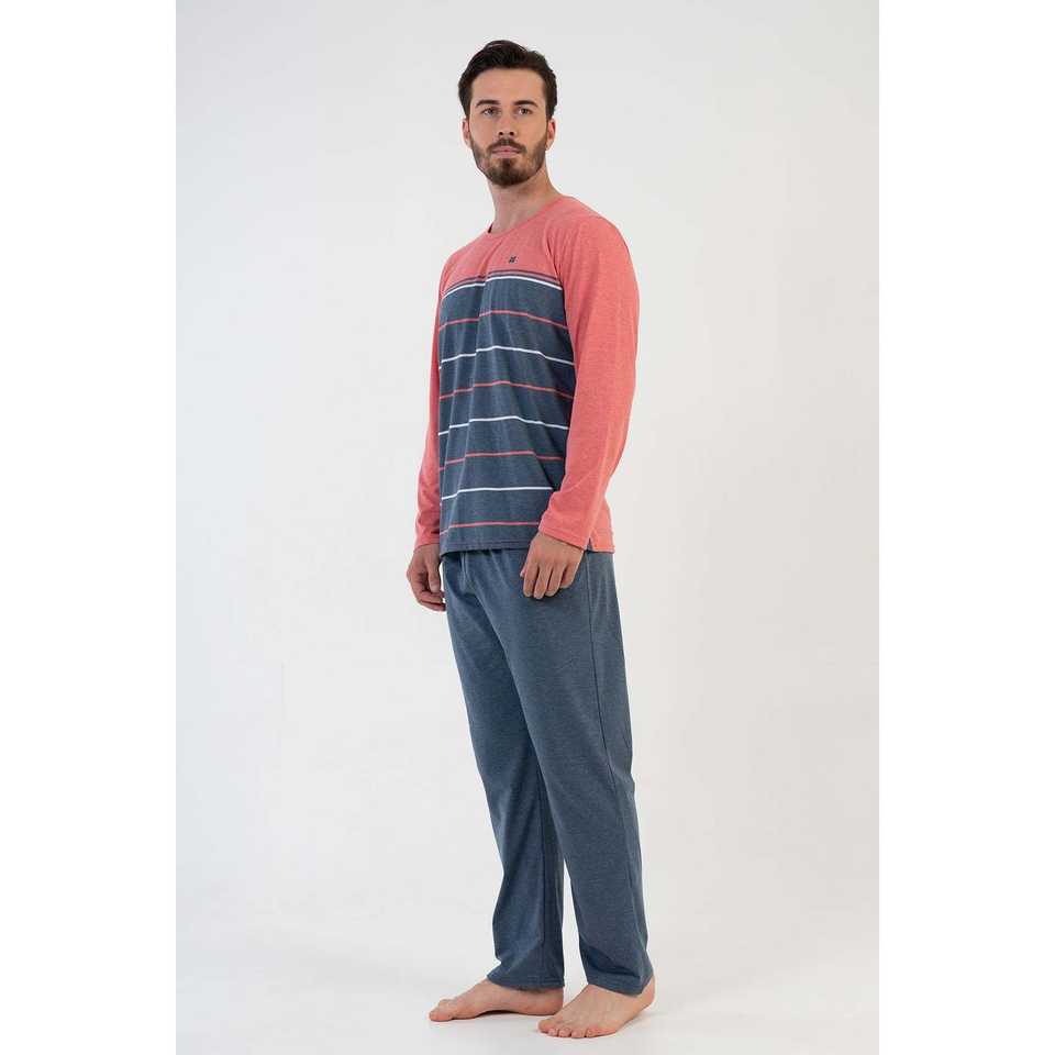 Big Size Men's Coral Cotton Pajama Set Knitted Long Sleeve Sleepwear Plus Size