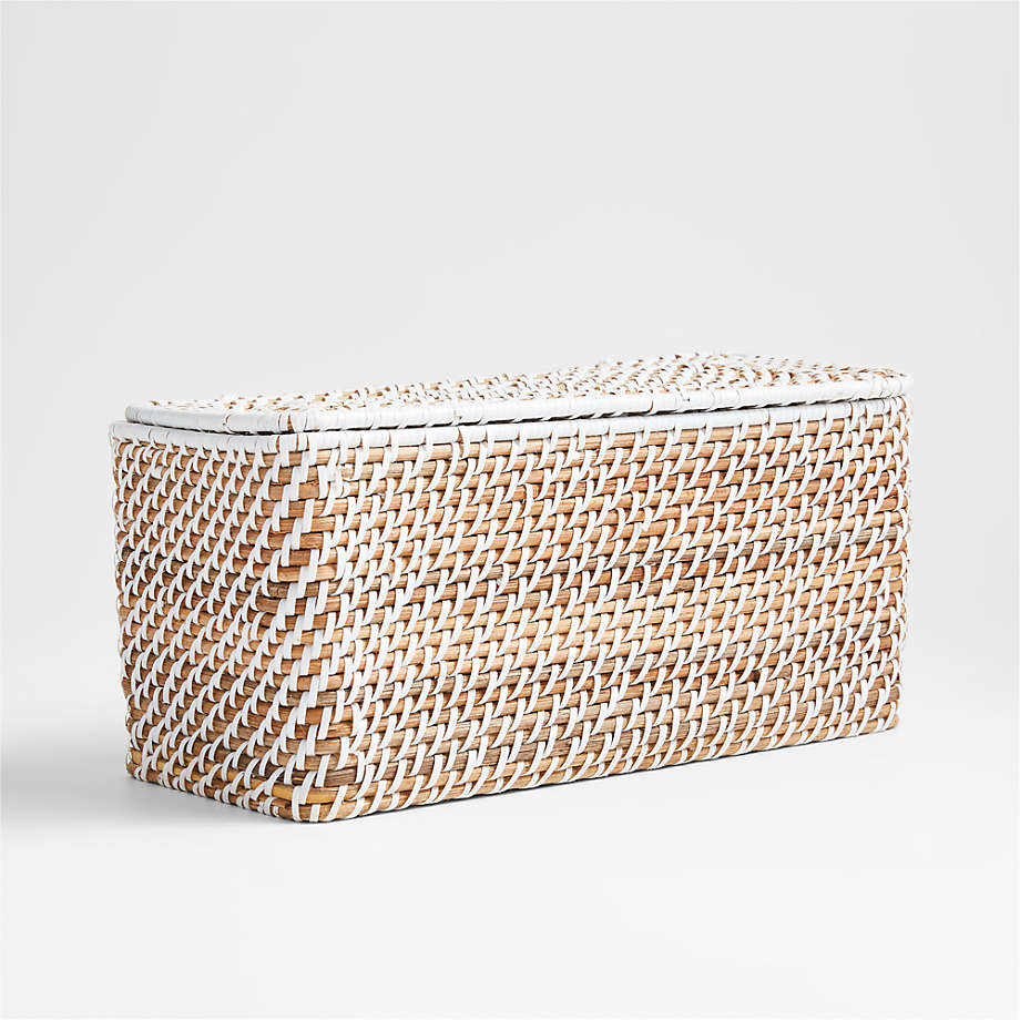 Big Size White Woven Rattan Storage Box With Lid for Home Storage & Organization