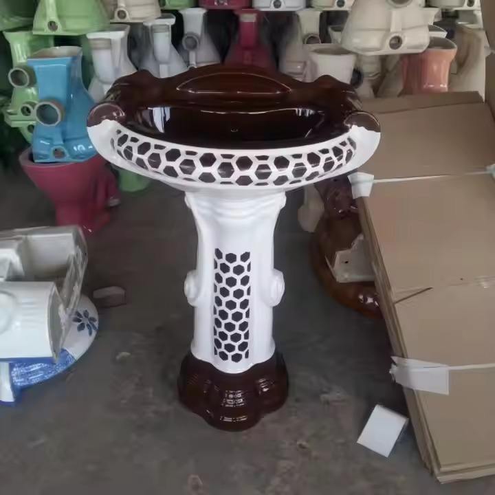 Big Sterling Ceramic Wash Basin Pedestal 26x21 Floor Standing Yemen Iraq Design