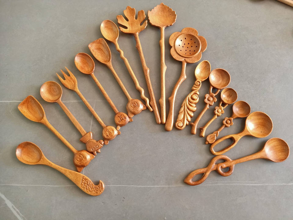 Big Wooden Bent Soup Serving Spoon Flower Shaped Spoon Heat Resistant Bamboo Kitchen Utensils Bamboo Wooden Spoon Special Design