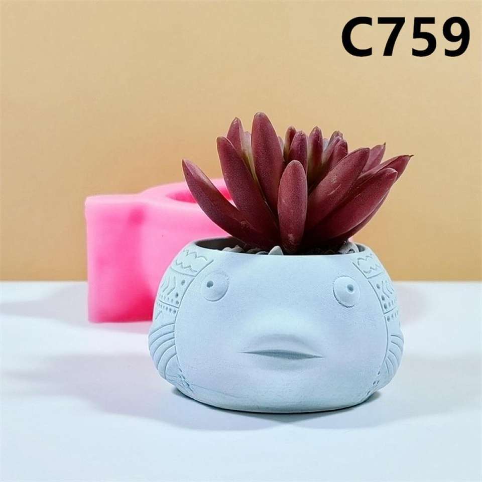 Bighead Carp Flower Pot Cute Succulent Green Plant Handmade Home Decoration Gypsum Silicone Mold