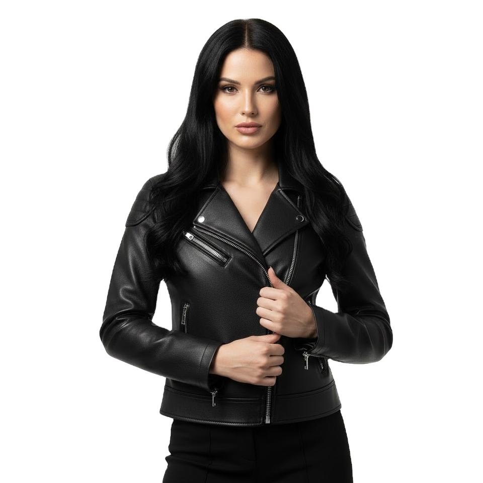 Bike Style Custom Made Leather Jacket Hot Selling Premium Luxury Women's Jacket High Quality Real Genuine Black Leather in Moto