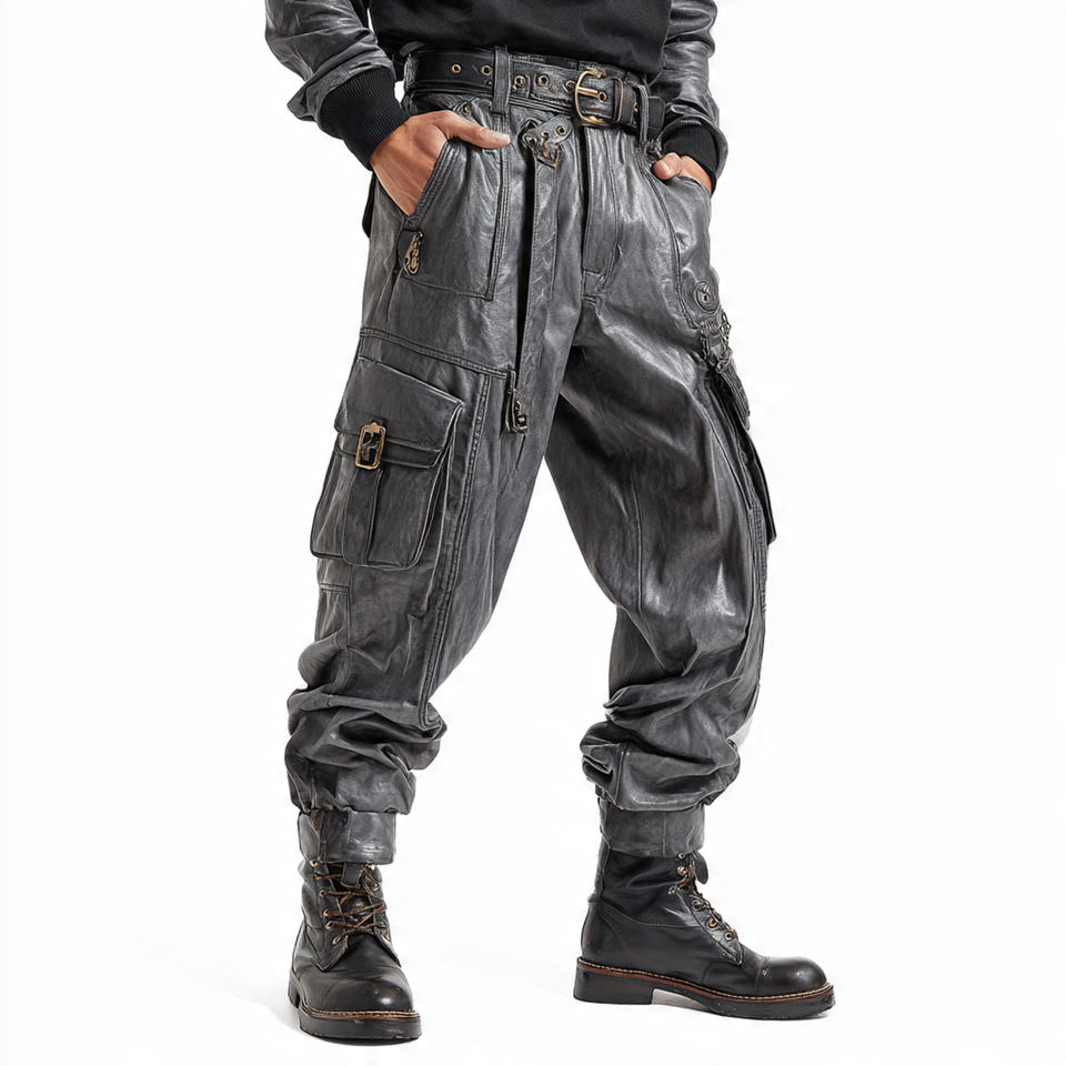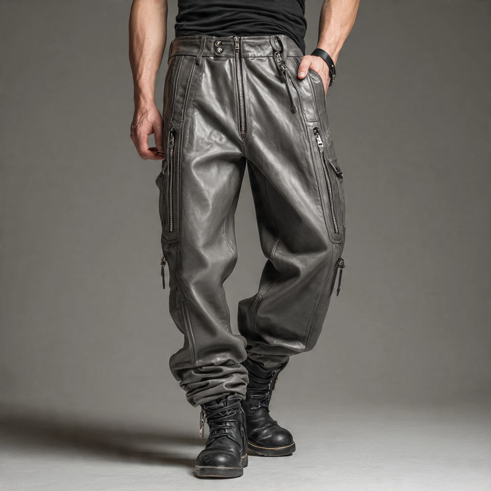 Biker PU Leather Pants Men