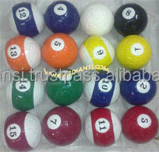 Each ball in poly bag. 48 pool balls in export carton. 9400 Balls in 20 feet container.