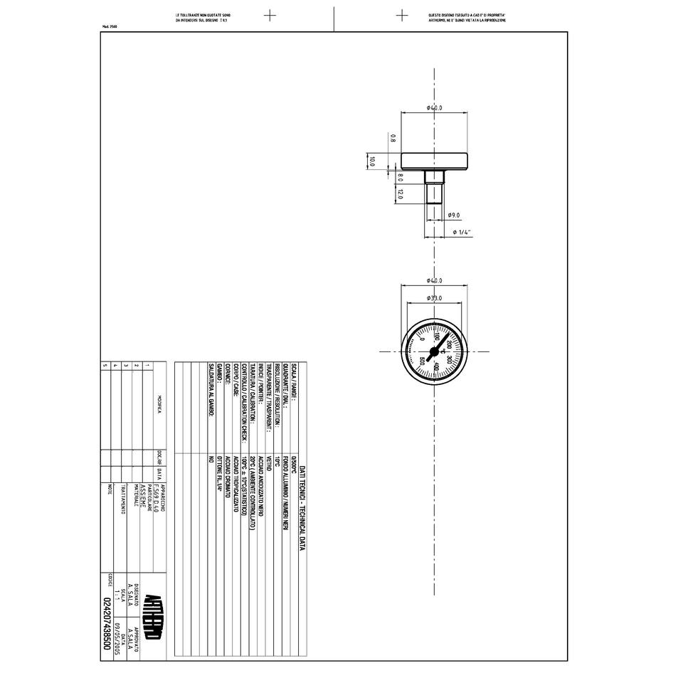 Bimetallic Thermometer Fig.569 40 mm zinc body chromed frame, brass stem mm.20 d.9 connection 1/4", block nut, temperature