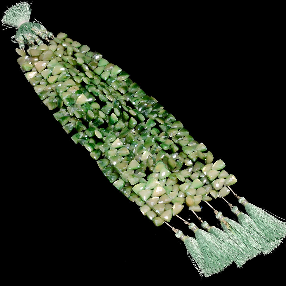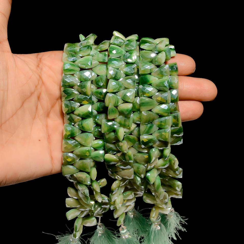 Bio Green Moonstone Beads, Coated Bio Green Moonstone Gemstone Triangle Beads, Faceted Moonstone Beads For Jewelry Making,