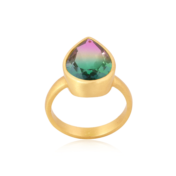 Bio Mystic Doublet Quartz Gemstone Ring Yellow Gold Plated Fashion Ring Wholesale Brass Rings Supplier Jewelry Manufacturer