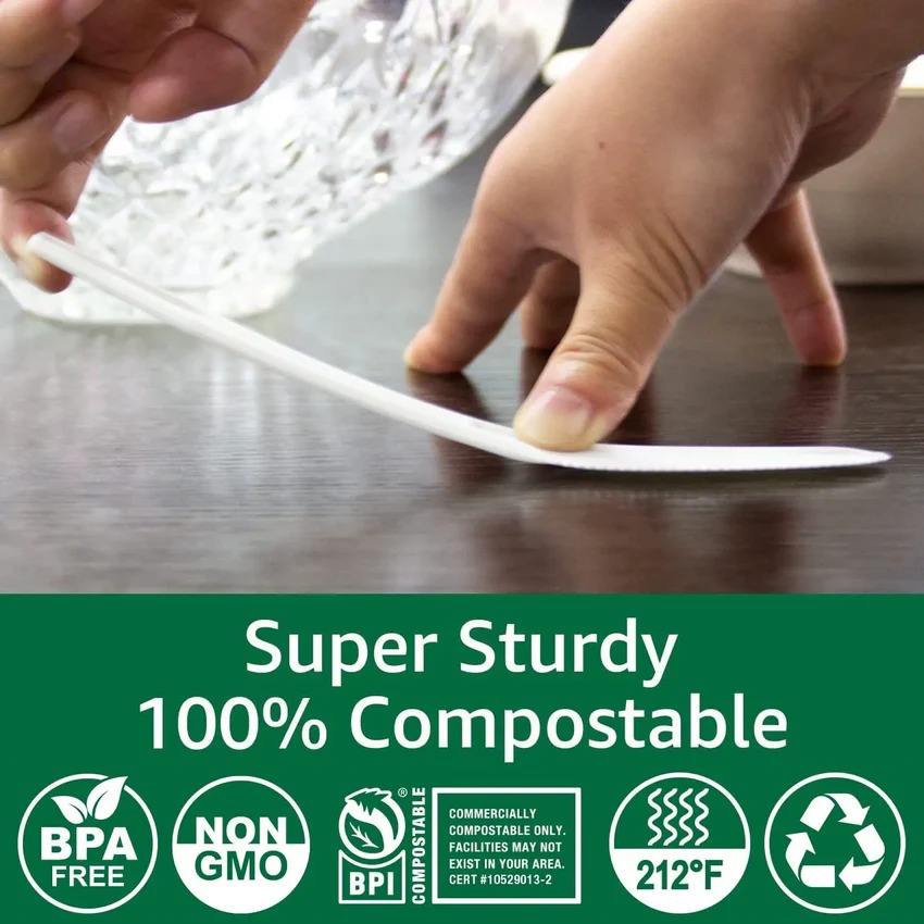 Biocean 7" White Heavy Weight Disposable Biodegradable Eco-Friendly Compostable PLA Knife-Party Use 150/Case
