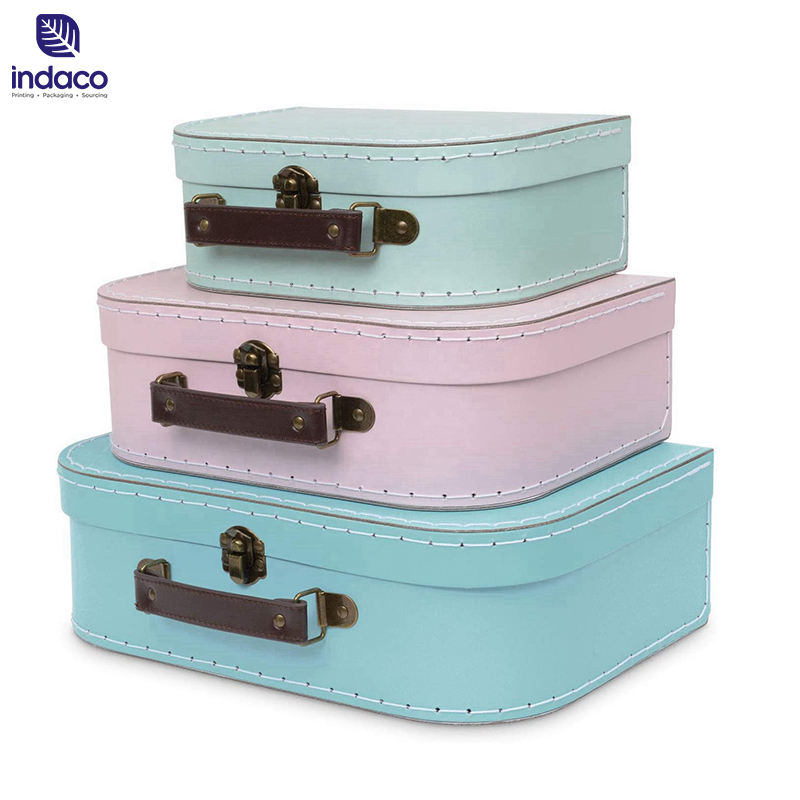 Biodegradable Box Packaging pink 3 Sets Cardboard Suitcase Gift Boxes Antique Suitcase with Handle