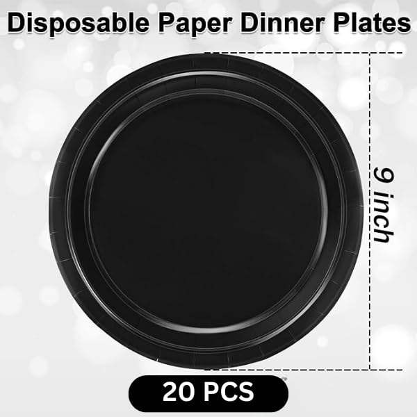Biodegradable Disposable 9-inch Black Paper Plates Round Rice Dish for Parties Cake Dessert Snack Fruits