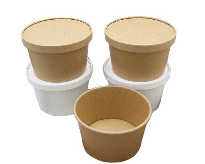 Biodegradable Disposable Round Kraft Paper Hot Soup Food Cup Take Away Food With Vented Paper Lid