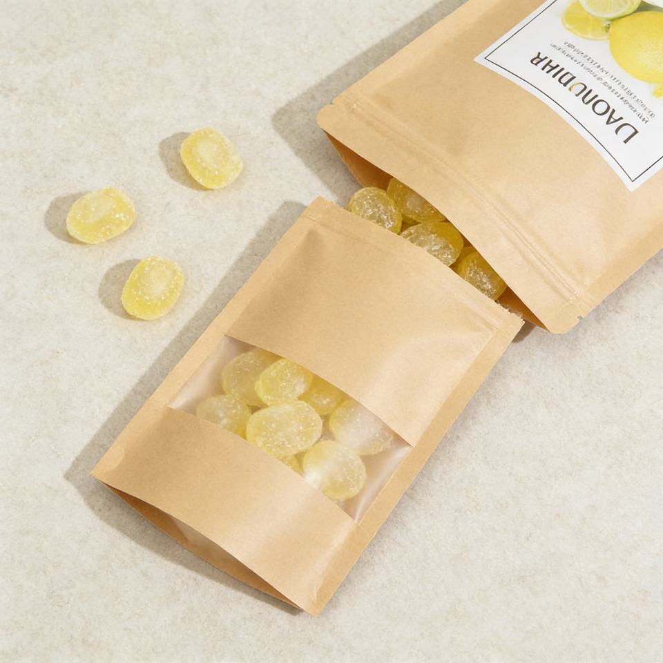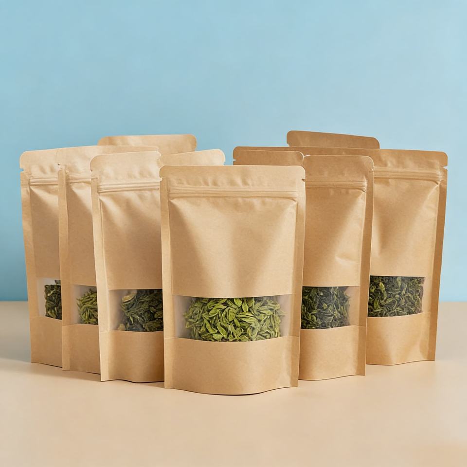 Eco-Friendly Kraft Paper Ziplock Stand-Up Bags with Ribbon | Custom Food Packaging Pouches with Window for Snacks