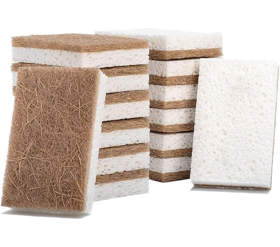 Biodegradable Natural Kitchen Sponge Compostable Cellulose and Coconut Walnut Scrubber Sponge Eco Friendly Sponge