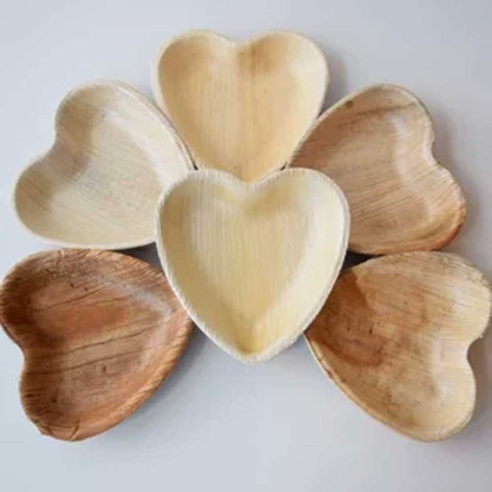 Biodegradable Palm Leaf Heart Bowls for Eco Friendly Dining and Food Presentation At Good Price