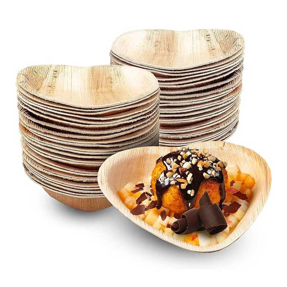 Biodegradable Palm Leaf Heart-Shaped Bowls for Wedding Events, Parties and Food Serving