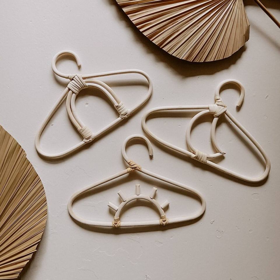 Biodegradable Rattan Baby Hangers for Children Clothes Kids Hanger Set With Sun rainbow Moon Shapes