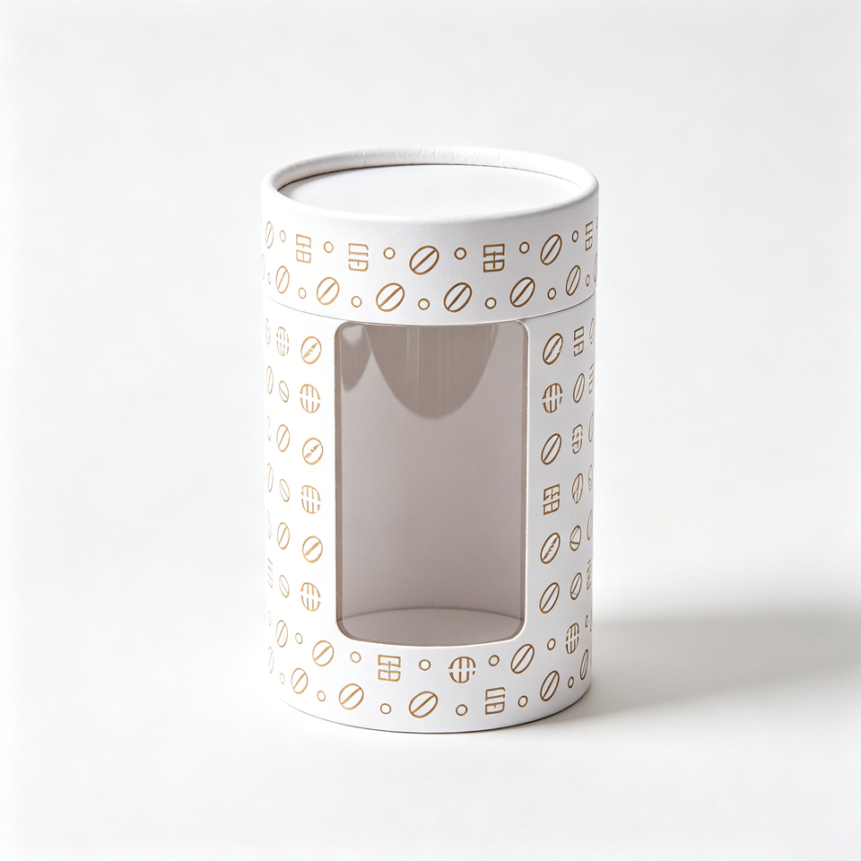 Biodegradable Round Cardboard Tube With Display Window Custom Design Box For Coffee Bean Daily Storage