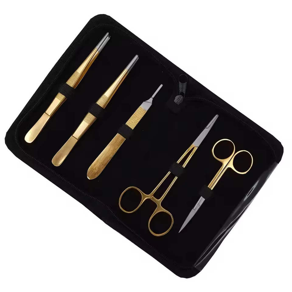 Biology Teaching Medical Student Dissecting Lab Set 5 Pcs Manual German Steel Gold Color Coated Surgical by Blush Surgical