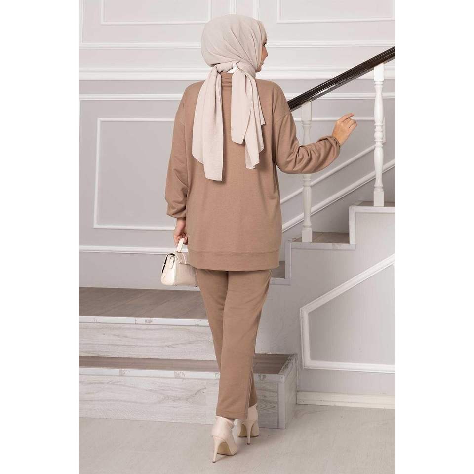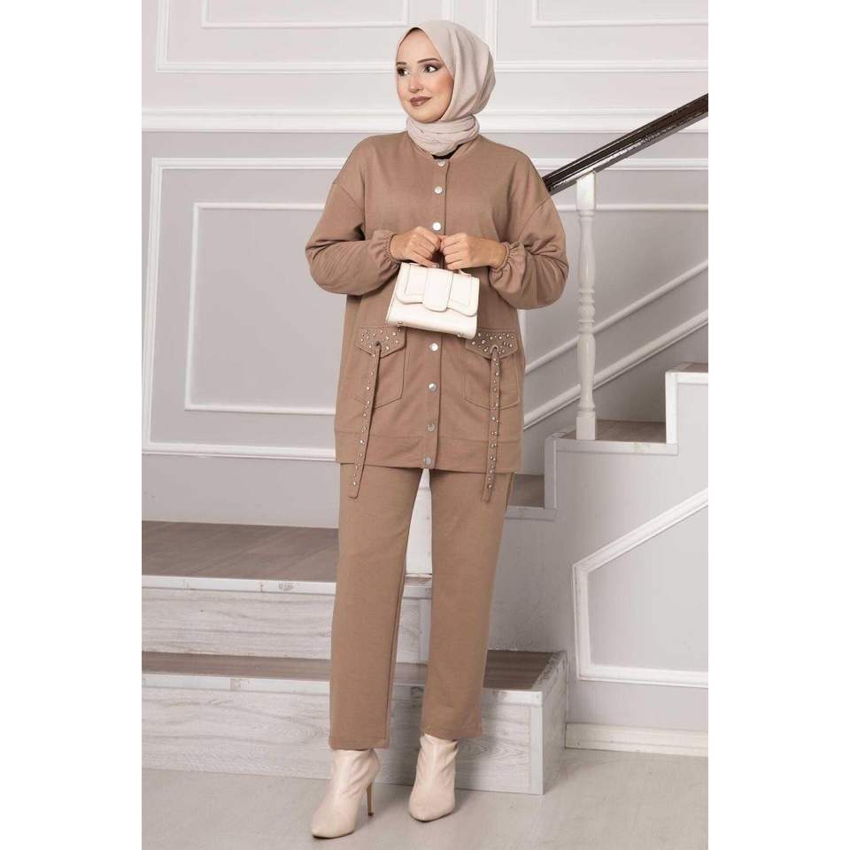 Bird Eye Stone Pattern Two Yarn Set Mink