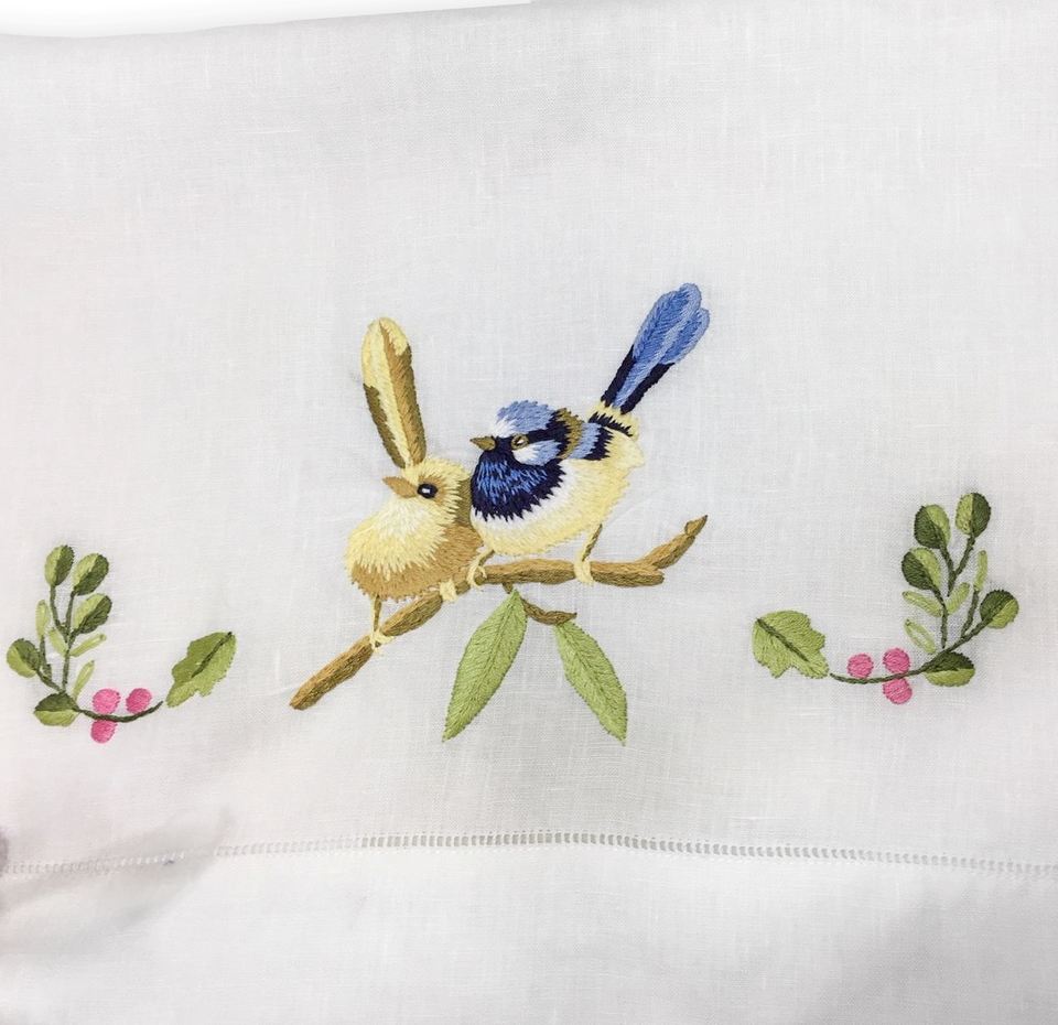 Bird Hand Embroidery Hand Towel, 100% Linen Fabric, Size 35x50cm