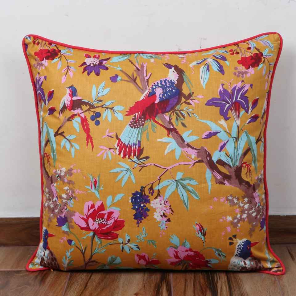 Birds Design Floral Geometric Pattern Square Rajasthani Hand Block Printed Cotton Cushion Cover for Living Room Home Decor U89