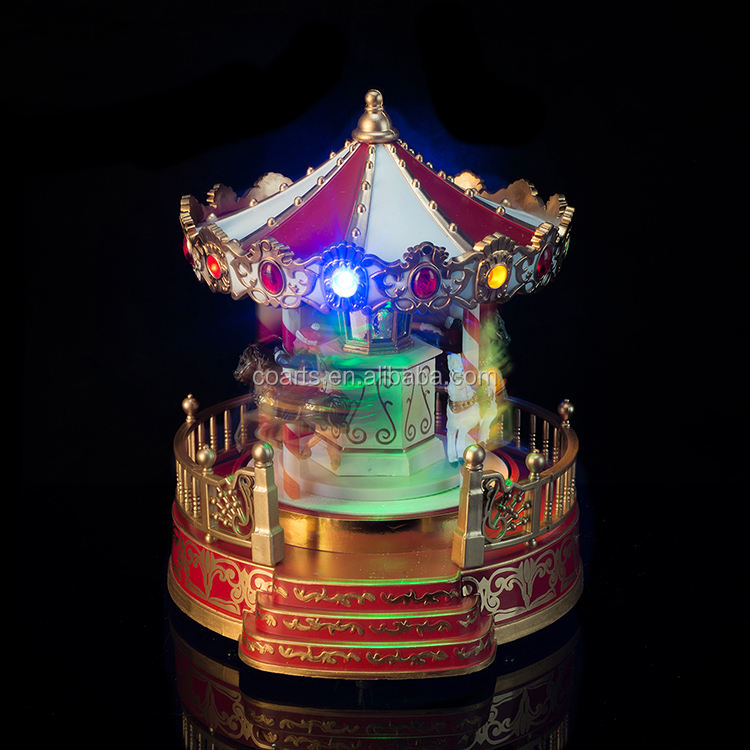Birthday Gift Carousel Horse Music Box OEM Custom Merry-go-round Christmas With Led Light Battery Round Navidad Gift & Crafts