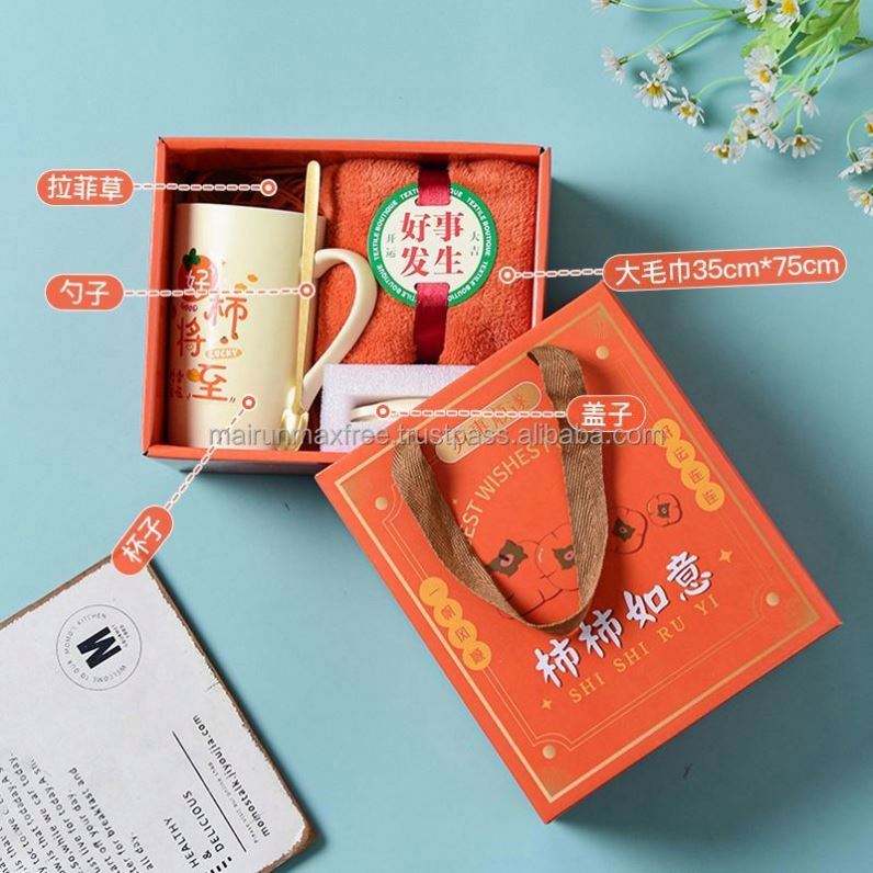 Birthday Gift Set Custom Glass Mug Towel Set New Year Christmas Wedding Favors Guests Return Unique Women Promotional