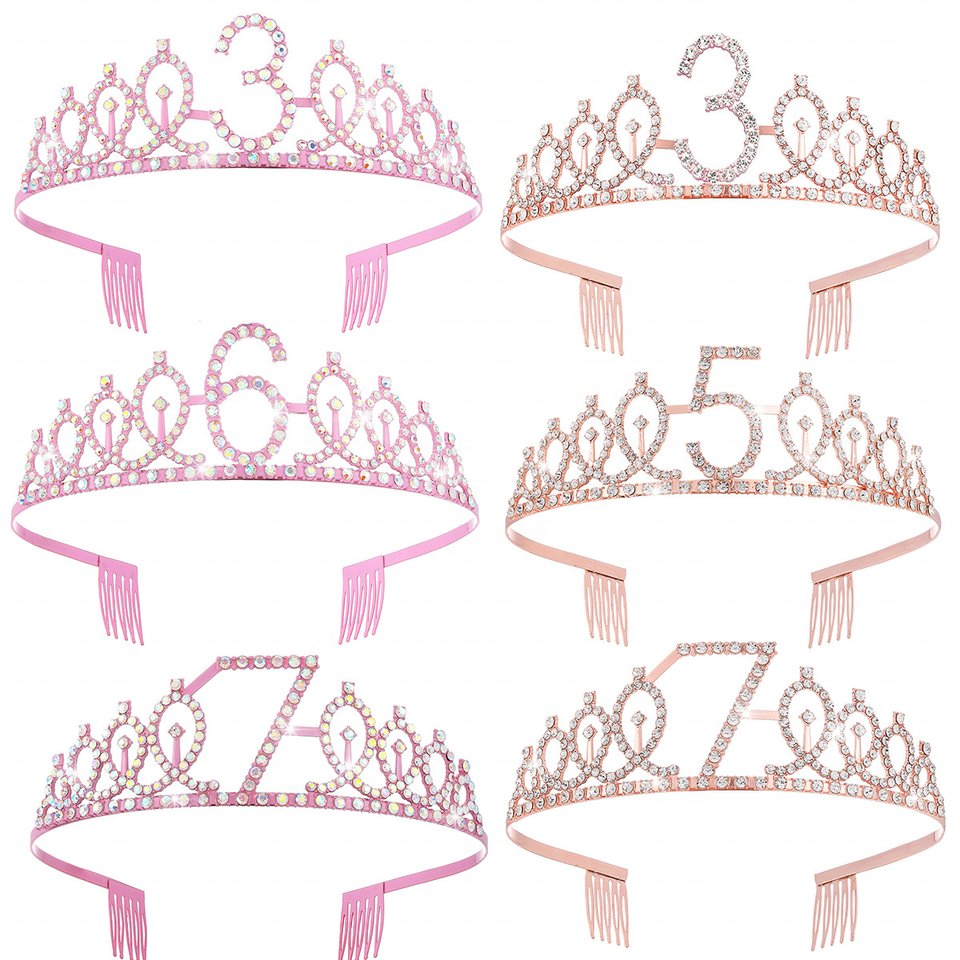 Birthday Girl Sash & Rhinestone Tiara Kit Birthday Decorations Party Favors Sash Tiara for Girl Gold Crown