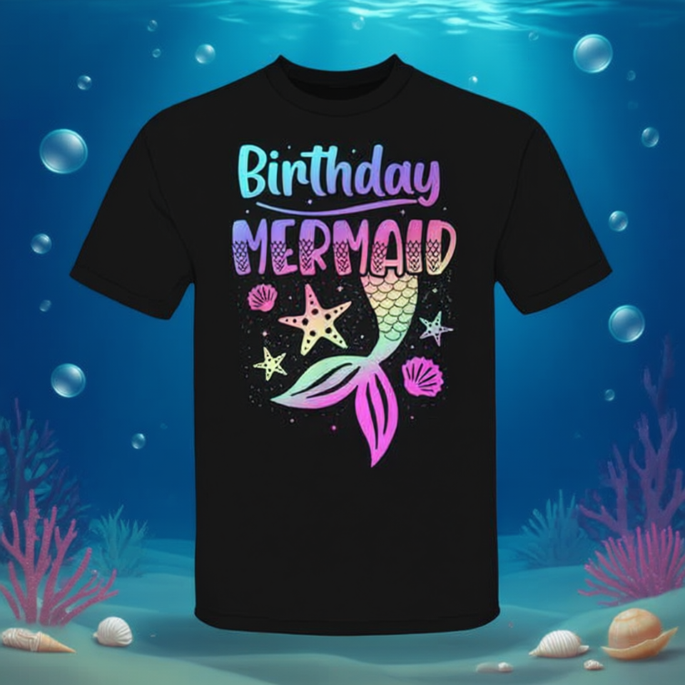Birthday Mermaid T-Shirt For Girls And Women Party Wear