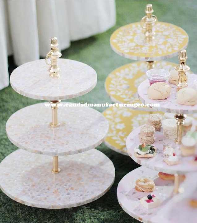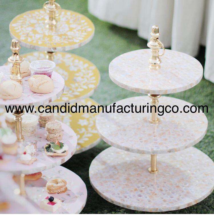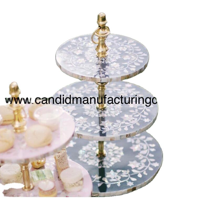 Birthday Party Cake Stand Mother of Pearl Inlay Resin Colorful 3 Tier Dessert Stand for Cake Platter Cake Decorating Accessories