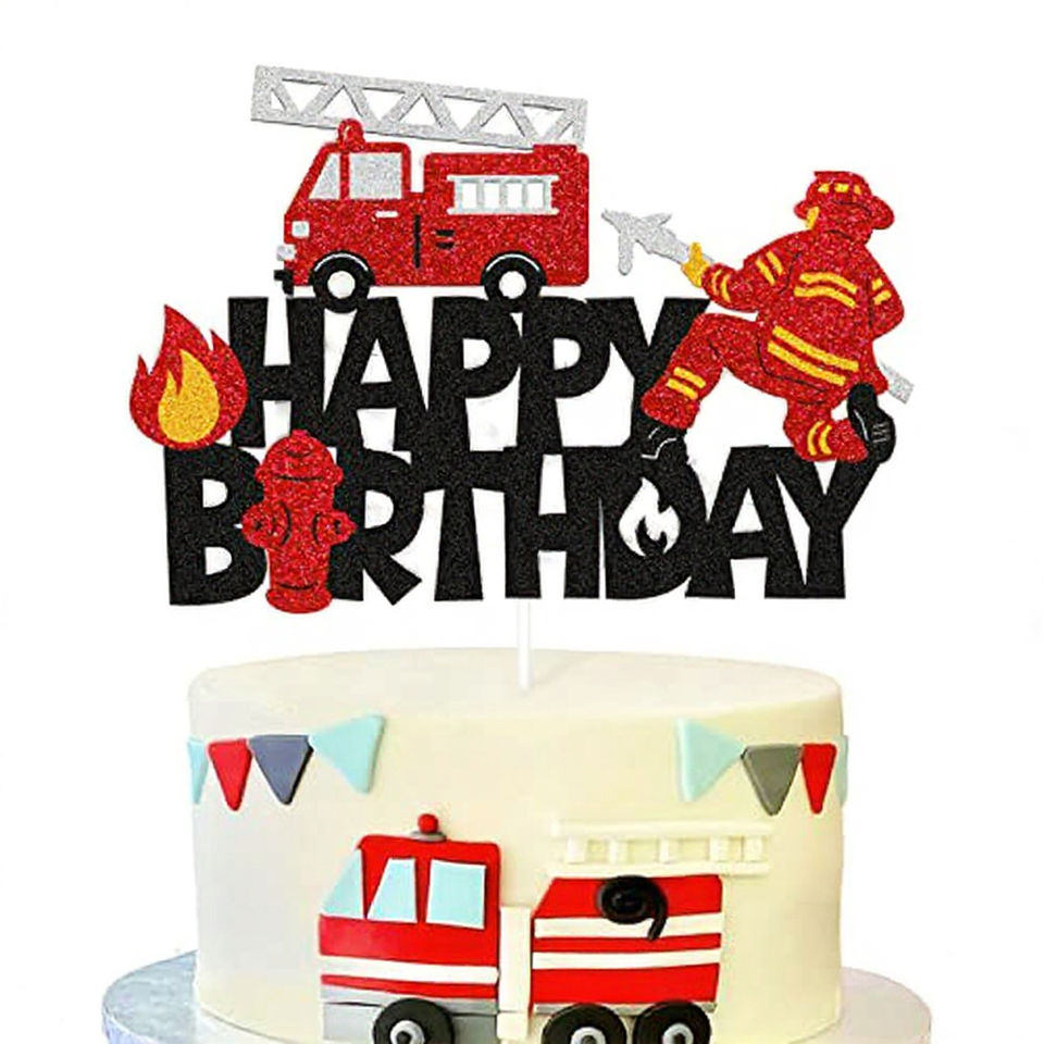 Birthday Party Decoration Supplies Fire Hydrant Truck Firefighter Helmet Alarm Engine Paper Cake Topper for Kids