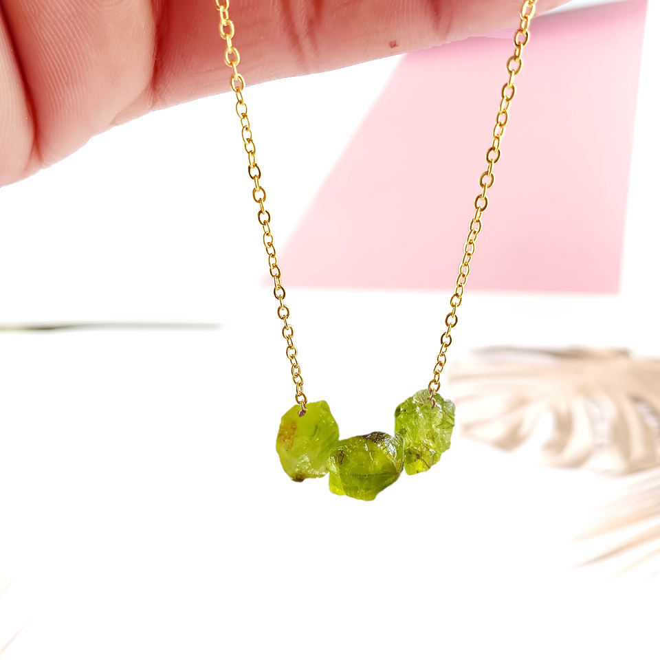 Birthstone Dainty Rough Peridot Gemstone Pendant Necklace Gold Vermeil Sterling Silver Healing Chakra Crystal Jewelry