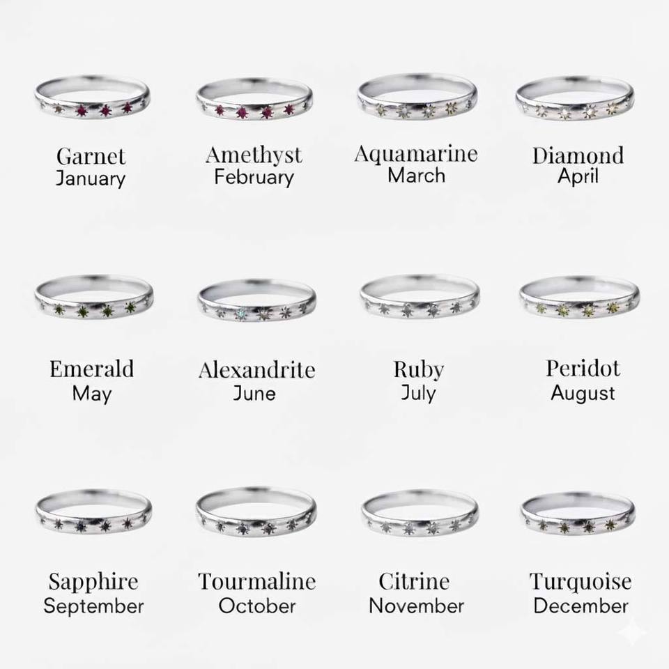 Birthstone Rings for Women January to December Dainty Gold Stacking Bands Perfect Personalized Gift Wholesale Gemstone Jewelry