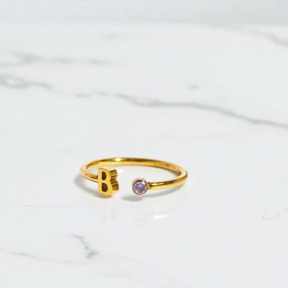 Birthstones With Alphabet "B" Ring - 925 Silver Gemstone Adjustable Ring - Plain Band Ring for Women - Handmade Jewelry