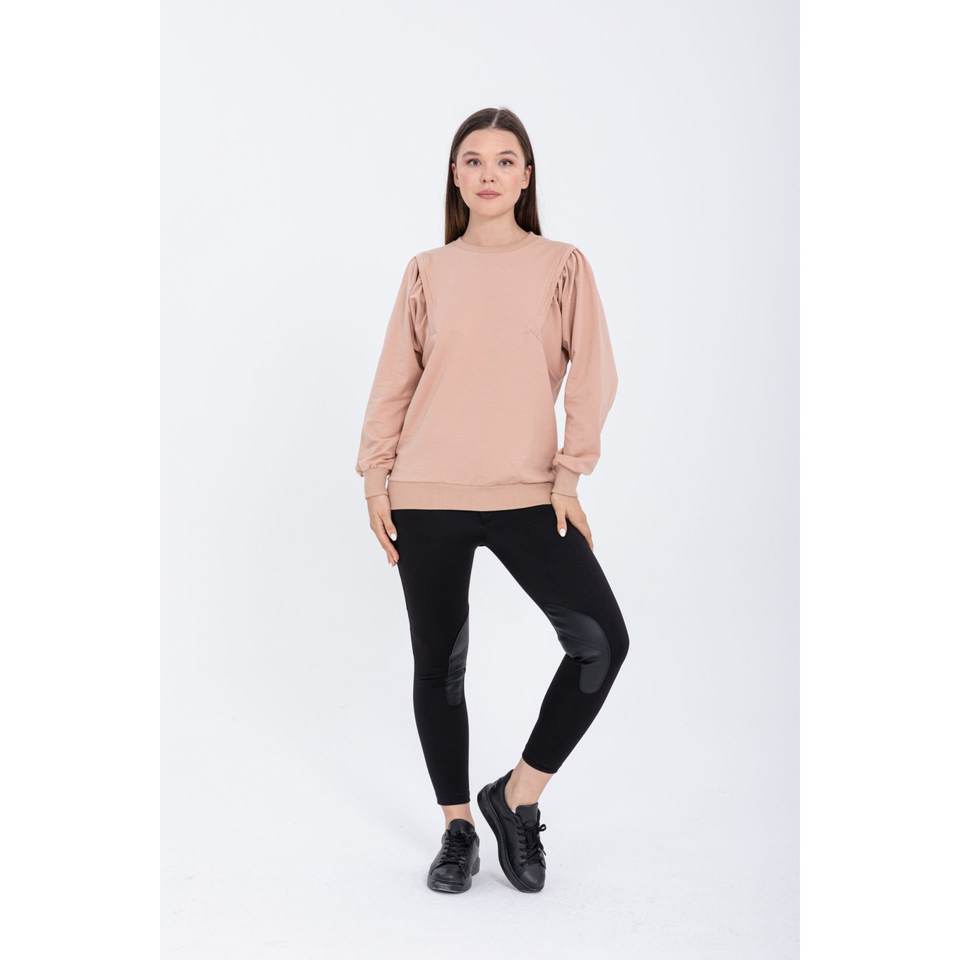 Bisiklet Yaka Uzun Kollu Kadın Sweat Bej