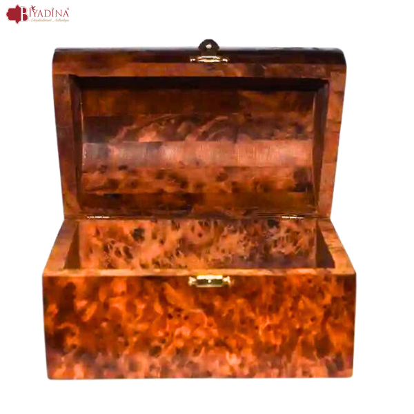 Biyadina's Moroccan Folk Art Brown Teak Burl Box Handmade with Polished Wood in Square Shape for Mother's Day Gift