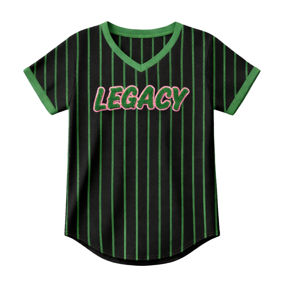 Black 08 Legacy Pullover Baseball Jersey Greek Sorority Apparel Womens Pink and Green College Sisterhood Mesh T Shirt Greek Wear