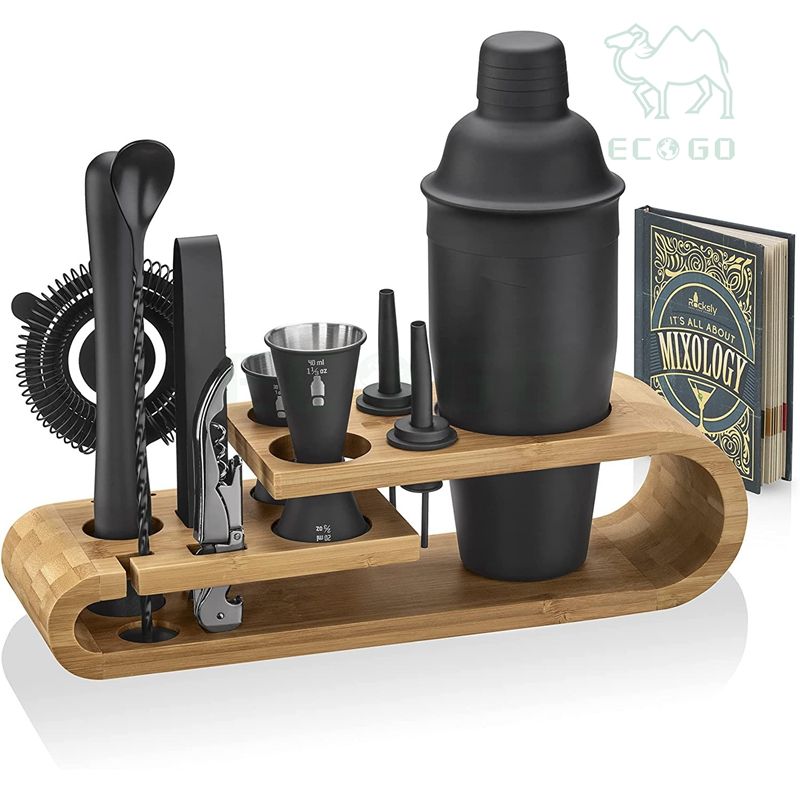 Black 10 Bar Set Fashional Cocktail Shaker Set Mixology Bartender Kit With Bamboo Stand Bar Accessories Set for Drink Mixing