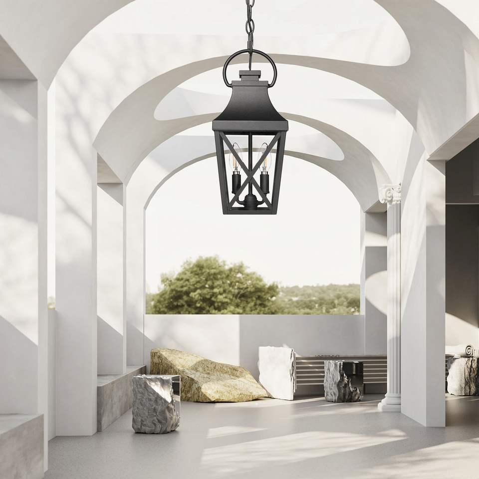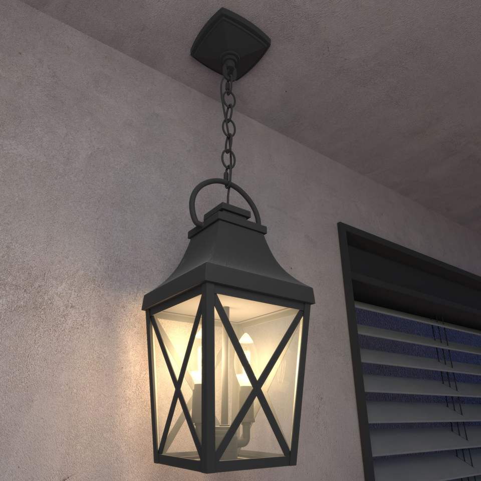 Black 2-Light Outdoor Pendant Clear Glass Industrial Hanging Cage Chandelier for Porch Farmhouse-Ceiling Mount Fixture (1 Pack)