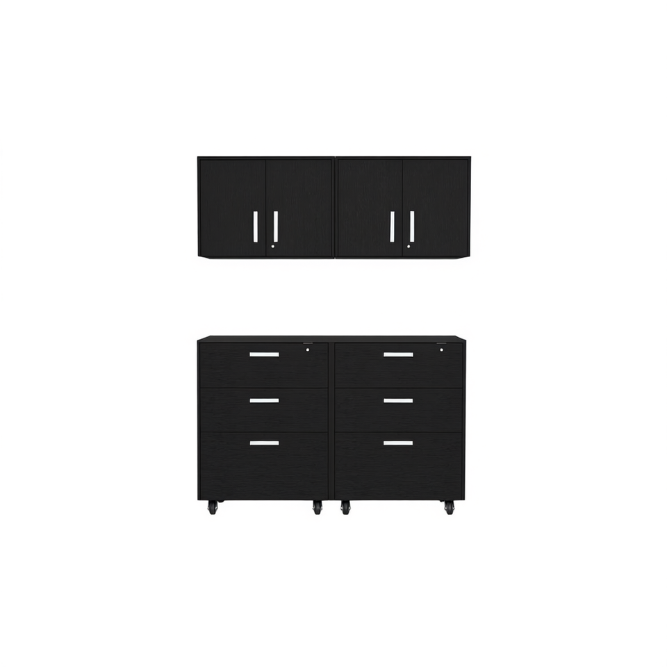 Black 2 Piece Garage Tool Cabinet Set With 6 Drawers Modern Style Storage Unit For Workshop Organization